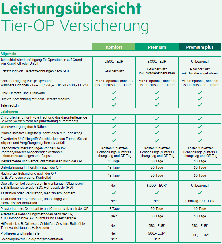 - OP Schutz unbegrenzt (Premium plus) oder 3.500,00 € Jahreshöchstleistung (Premium)