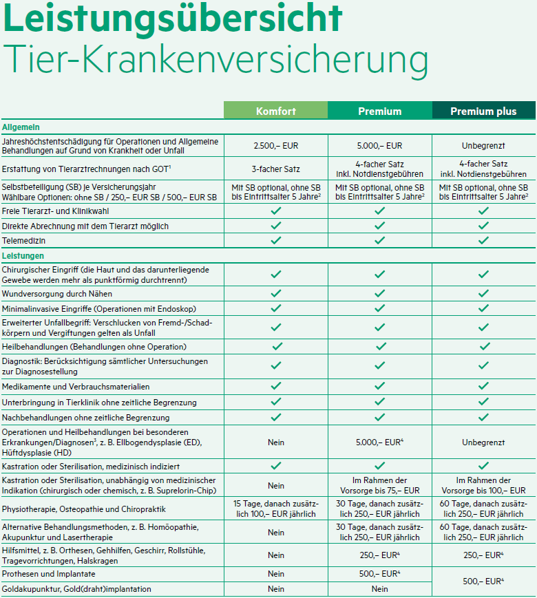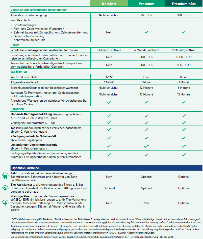 - inkl. Rassespezifischer Erkrankungen und angeborener Fehlentwicklungen (Wartezeit 12 Monate)